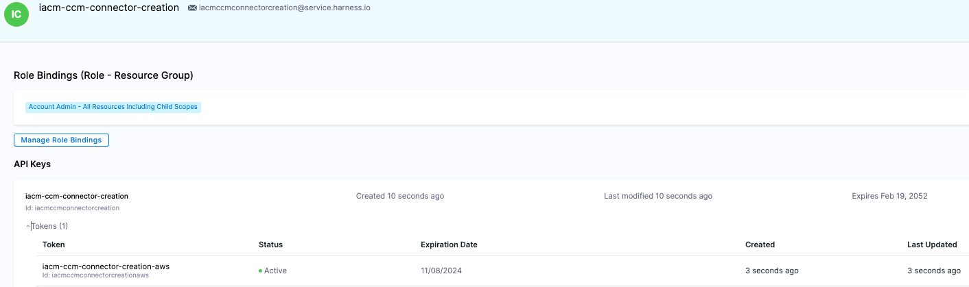 Note: For the role_arn, you'll have to replace the role name HarnessCERole with whatever role name you used when you provisioned it into each AWS account for Harness to use. It has to have the appropriate permissions done correctly for each CCM feature you want to use. Setting up this roles is outside the scope of this exercise, but possibilities are located here.