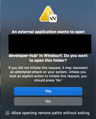 1. You'll be asked to give permission to establish a connection with a remote server. Click on Yes. Your Windsurf IDE will open.