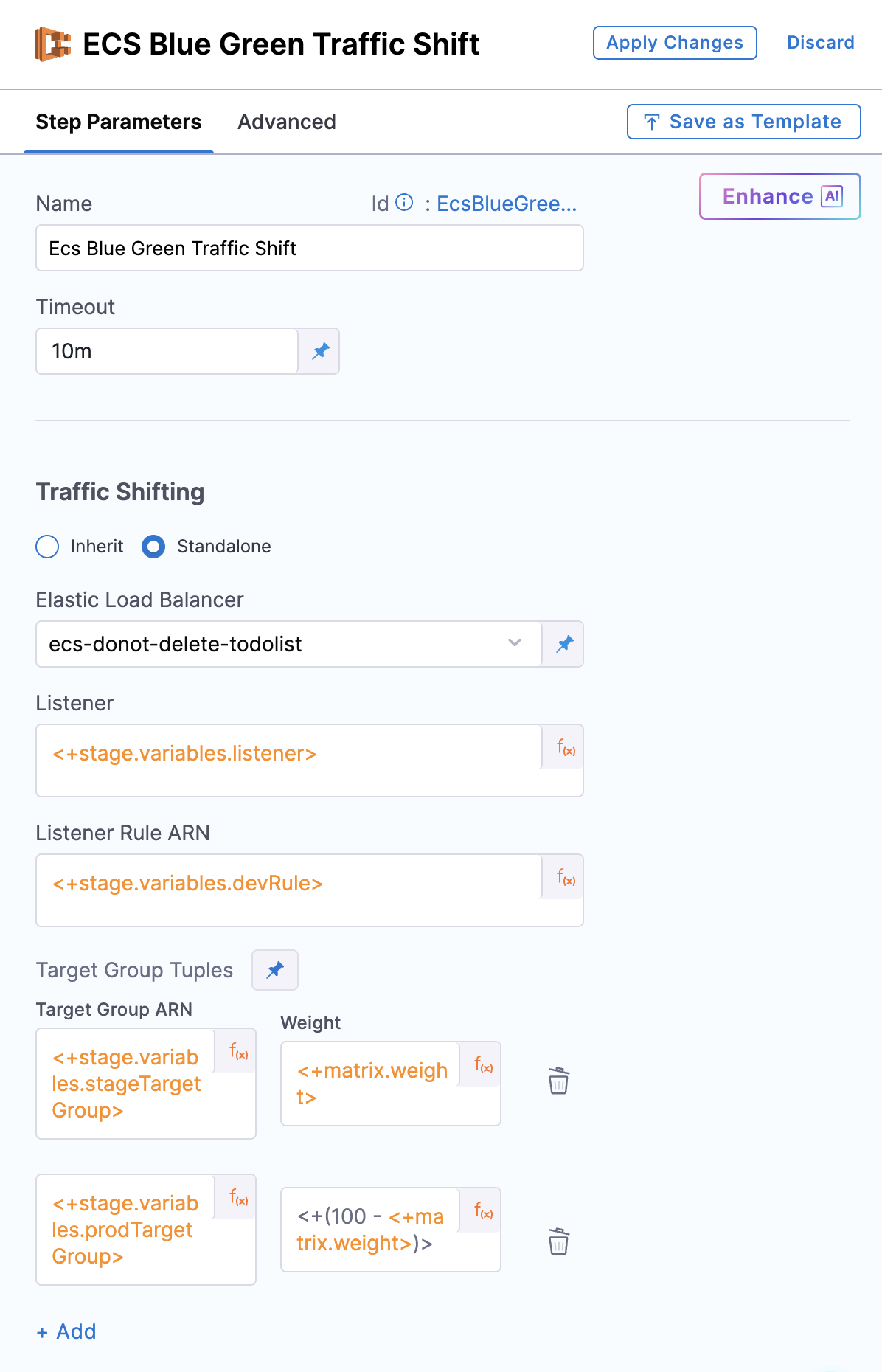2. Add an ECS Traffic Shift step (inherit or standalone) to begin shifting traffic incrementally.