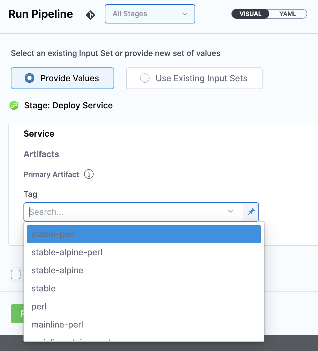 At runtime, the Harness variables in the values.yaml file are replaced with the values you entered in the Stage as fixed values or as Runtime Inputs.