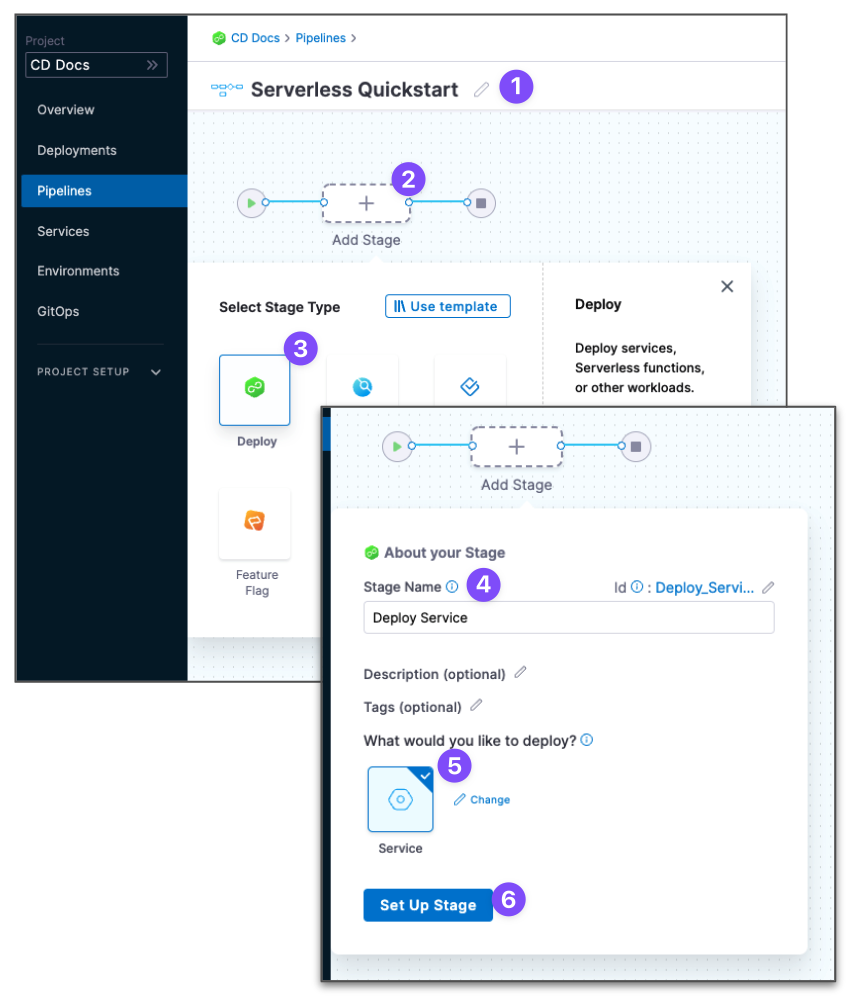 serverless.yamlfile and ZIP artifact to a Harness Pipeline stage. - Define your AWS Lambda service as the deployment target.