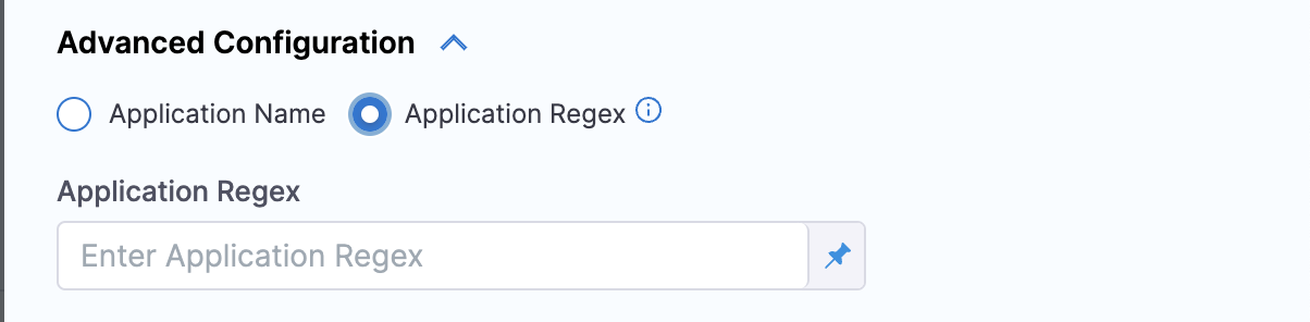 In Advanced Configuration, select the application you want to sync and configure the sync options. You can either can either choose an application or applications manually, or you can match up to 1000 applications using a regex filter.