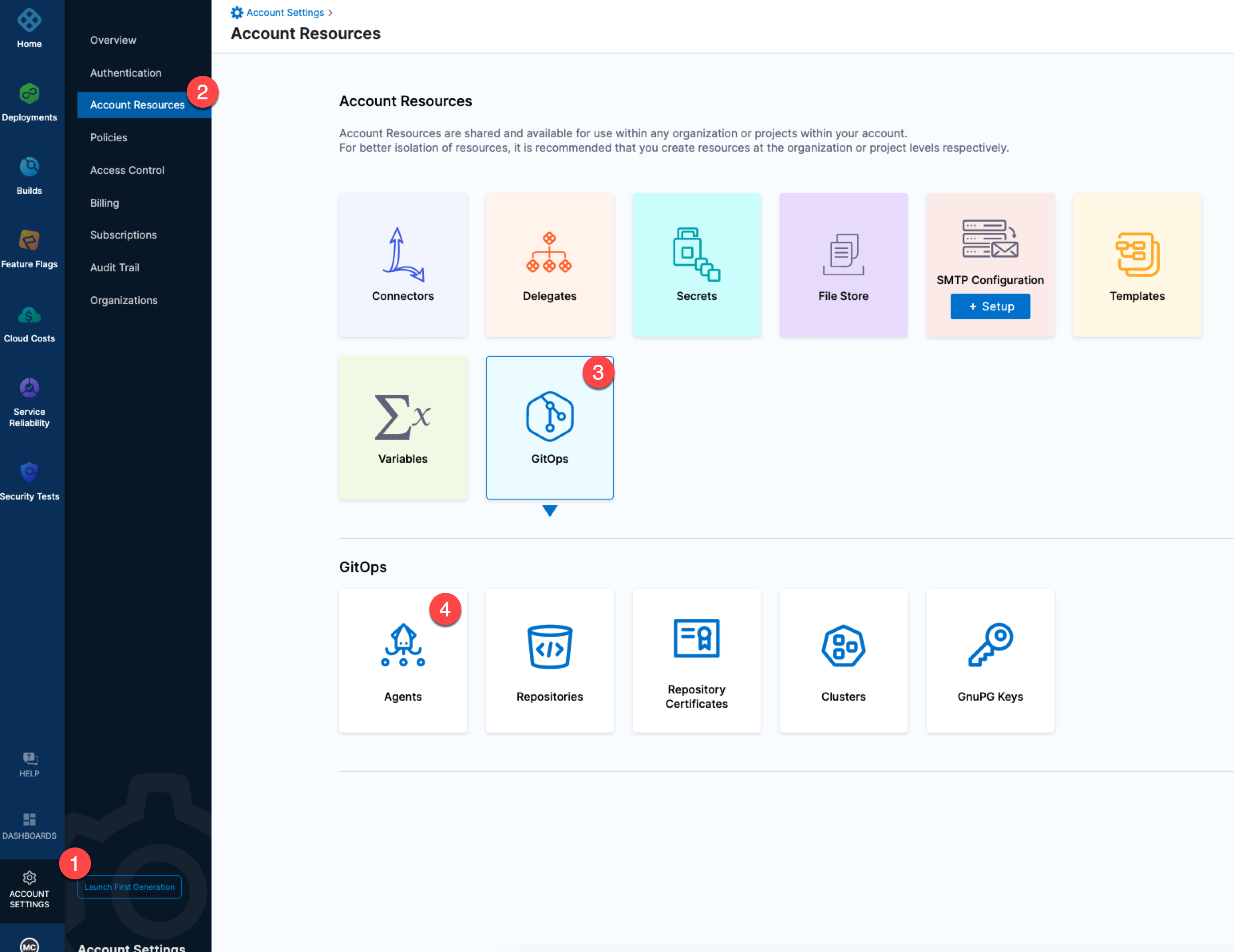 In your Harness account, select Account Settings.