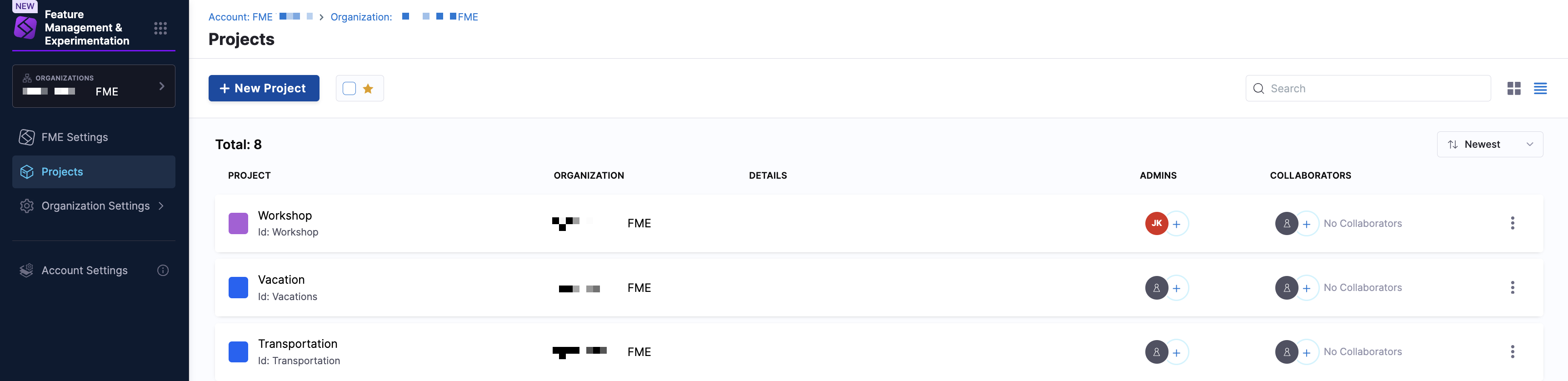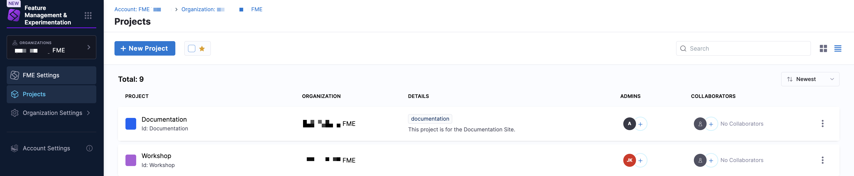 Project creation in Harness FME uses the Harness platform project workflow. After creating a project, return to FME Settings to configure FME-specific options.