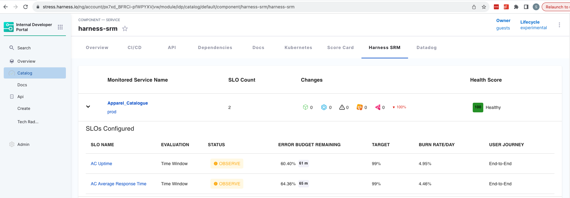 Note: You can also use the isHarnessSRMAvailable conditional. It is satisfied when the harness.io/services annotation is present in the software component's catalog-info.yaml definition file.