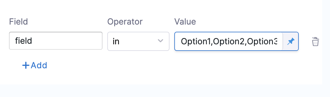 fieldto be inOption1,Option2, orOption3can be specified as:
