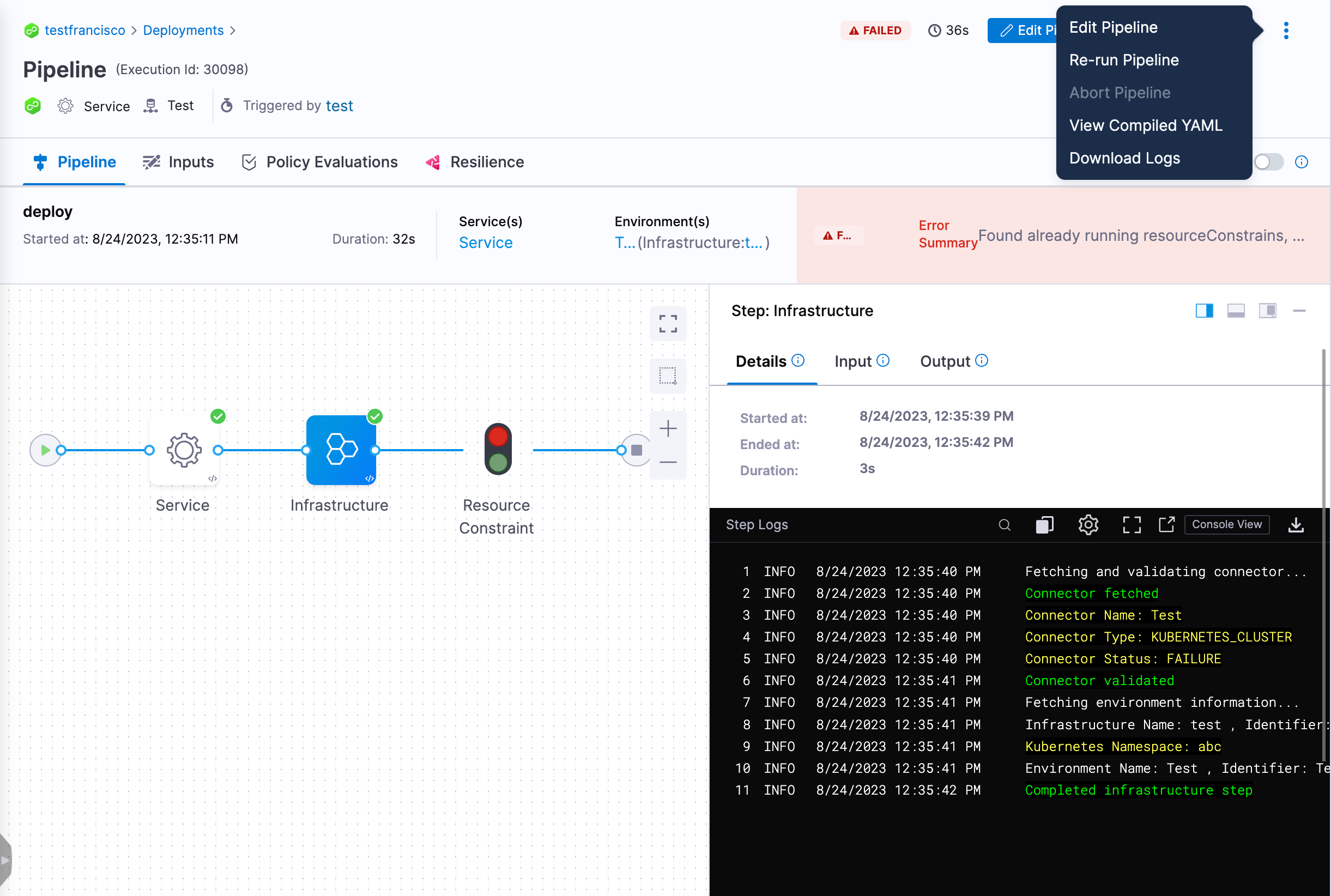 ACCOUNT_ID: Your Harness account identifier.STEP_PREFIX_KEY: A multi-part value consisting ofACCOUNT_ID/pipeline/PIPELINE_ID/RUN_SEQUENCE/-PLAN_EXECUTION_ID/STAGE_ID/STEP_ID. For example,12345abcd/pipeline/My_Cool_Pipeline/12/-dfstsh/My_Cool_Stage/My_Cool_Step.ACCOUNT_ID: Your Harness account identifier.PIPELINE_ID: The identifier of the pipeline that has the step that you want to get logs for.RUN_SEQUENCE: The incremental execution/build identifier of a specific pipeline run.-PLAN_EXECUTION_ID: A hyphen (-) followed by the identifier of the pipeline execution that you want to get logs for.STAGE_ID: The identifier of the stage that has the step that you want to get logs for.STEP_ID: The identifier of the step that you want to get logs for.