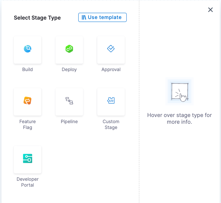 1. In Harness, open the pipeline, and then select Add Stage. The Select Stage Type settings open.