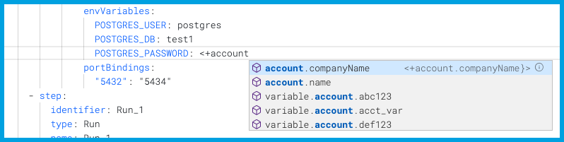 When you type <+, Harness provides suggestions for built-in expressions as you type.