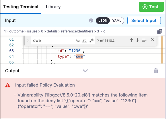 For example, suppose you want a policy to warn or block if a scan step finds any new vulnerabilities with severities of Critical or High. In this case, you can create a policy with the following OPA code: