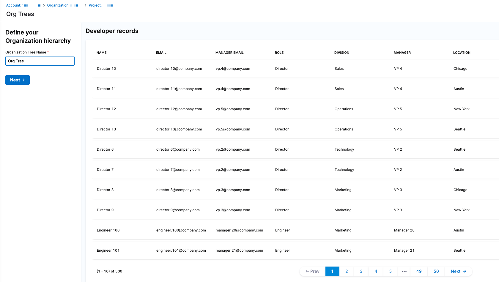 Org Trees are automatically generated from your organization's developer records, which are typically sourced from an HRIS system such as Workday or BambooHR and uploaded as a CSV file.
