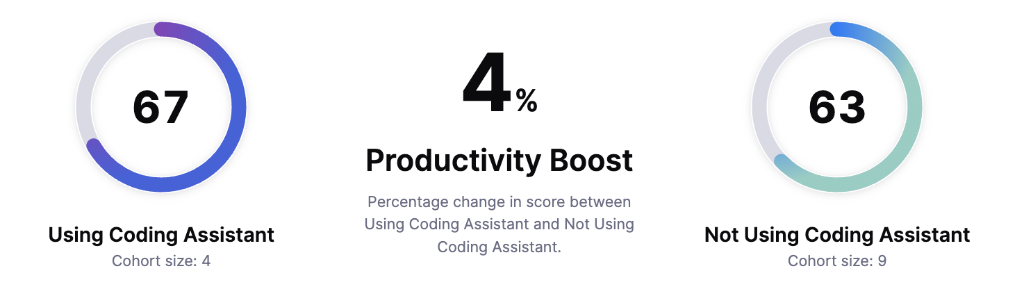 The productivity boost metric measures the change in performance between two groups (cohorts) over time, helping you evaluate the impact of AI tools on team efficiency.