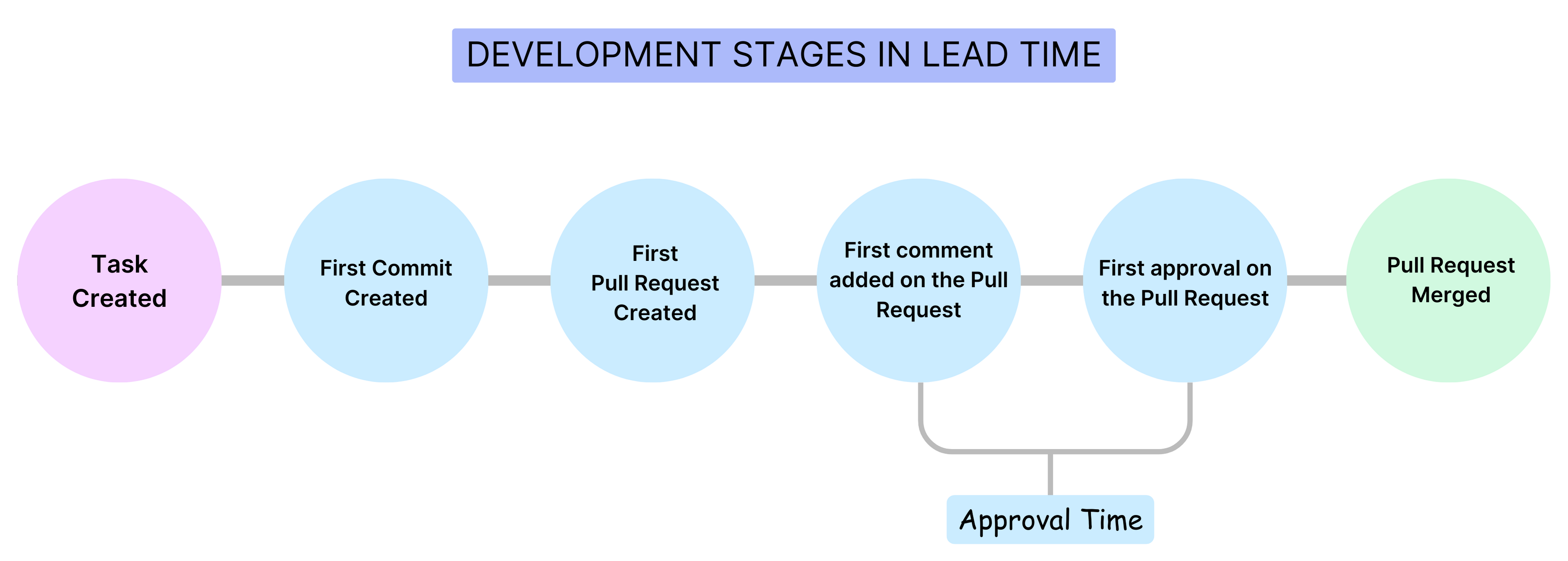 The specific events or stages considered in a lead time calculation depend on the report and the stages defined in the associated [Workflow profile]/docs/software-engineering-insights/propelo-sei/setup-sei/sei-profiles/workflow-profiles/velocity-profile). The lead time ultimately depends on the stages that a PR or issue actually goes through. For example, if there are no comments on the a, then the time to comment is zero.