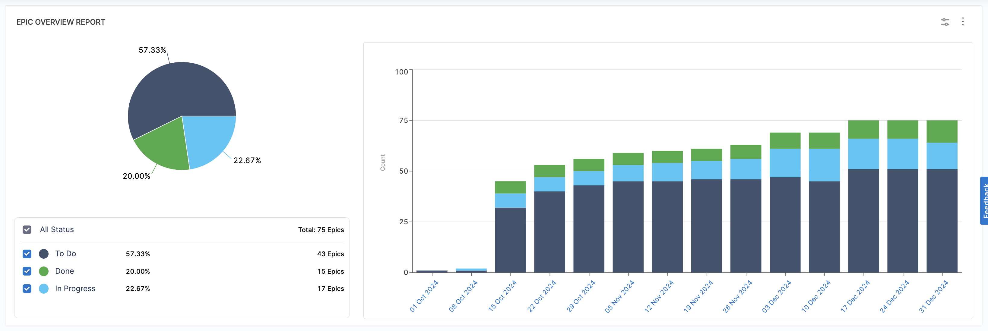 • Status: The state of the epic in the selected time interval (To Do, In Progress, Done).